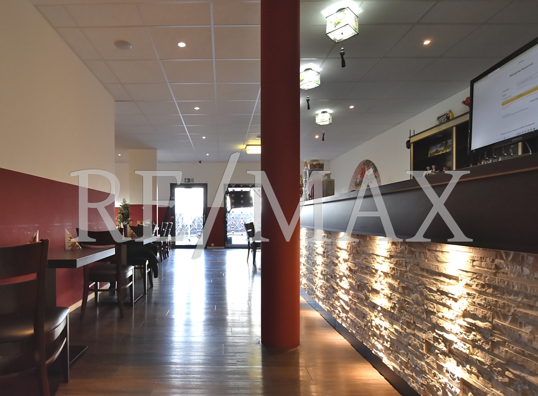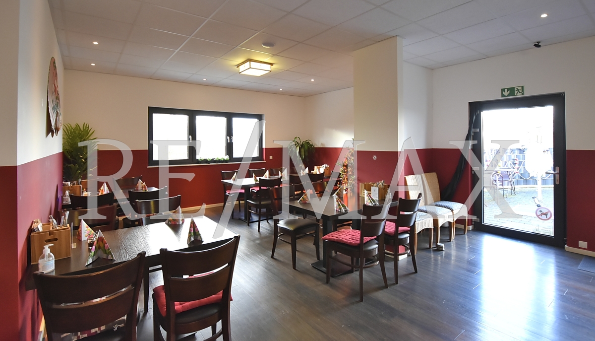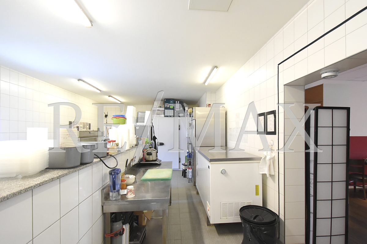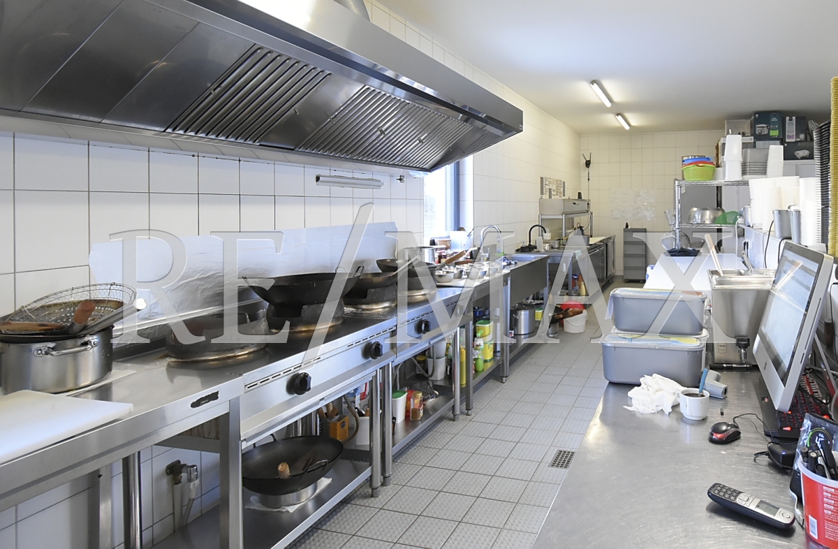 Die seit vier Jahren erfolgreich von einem asiatischen Restaurant betriebene Fläche verfügt über einen gut aufgeteilten Gastraum mit großer Theke und eine komplett eingerichtete großzügige Küchen- und Lagerfläche mit Fettabscheider.