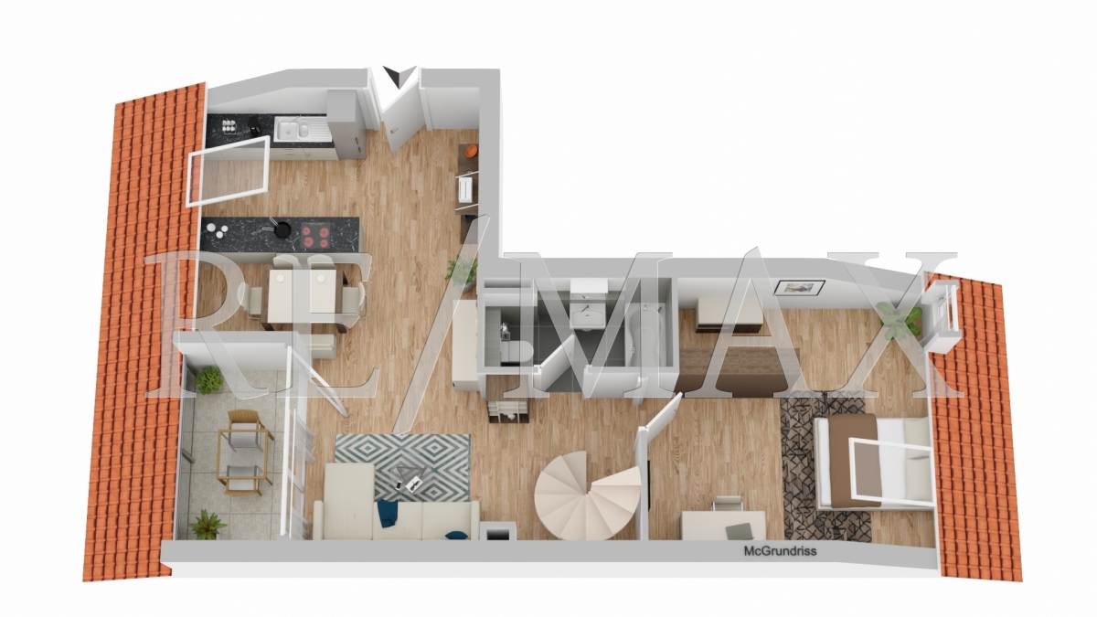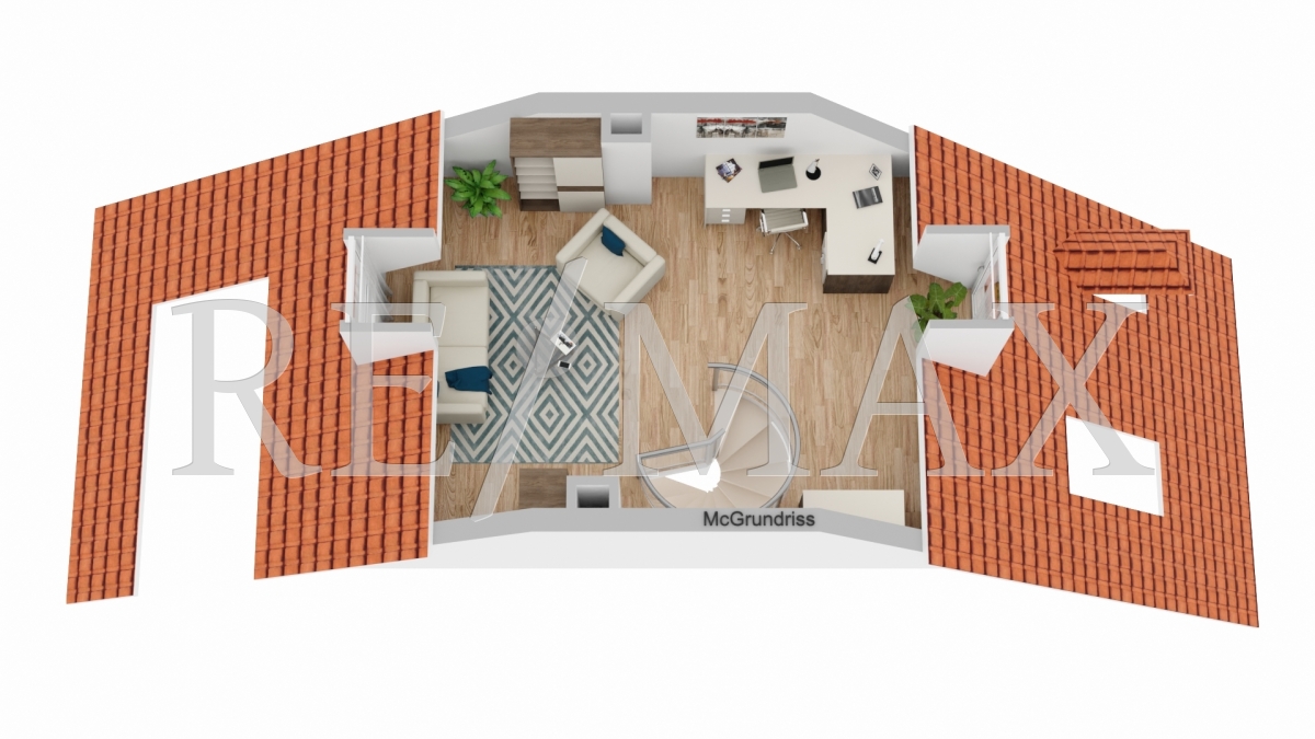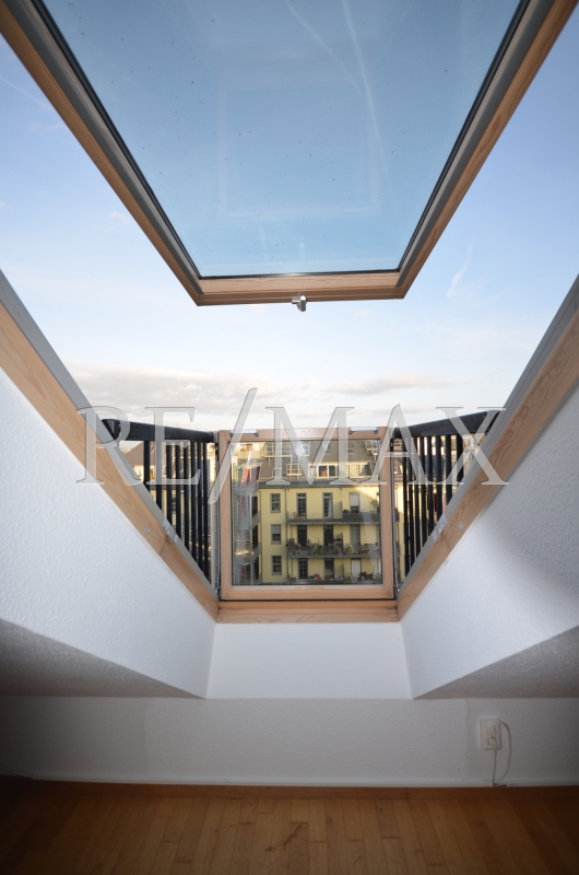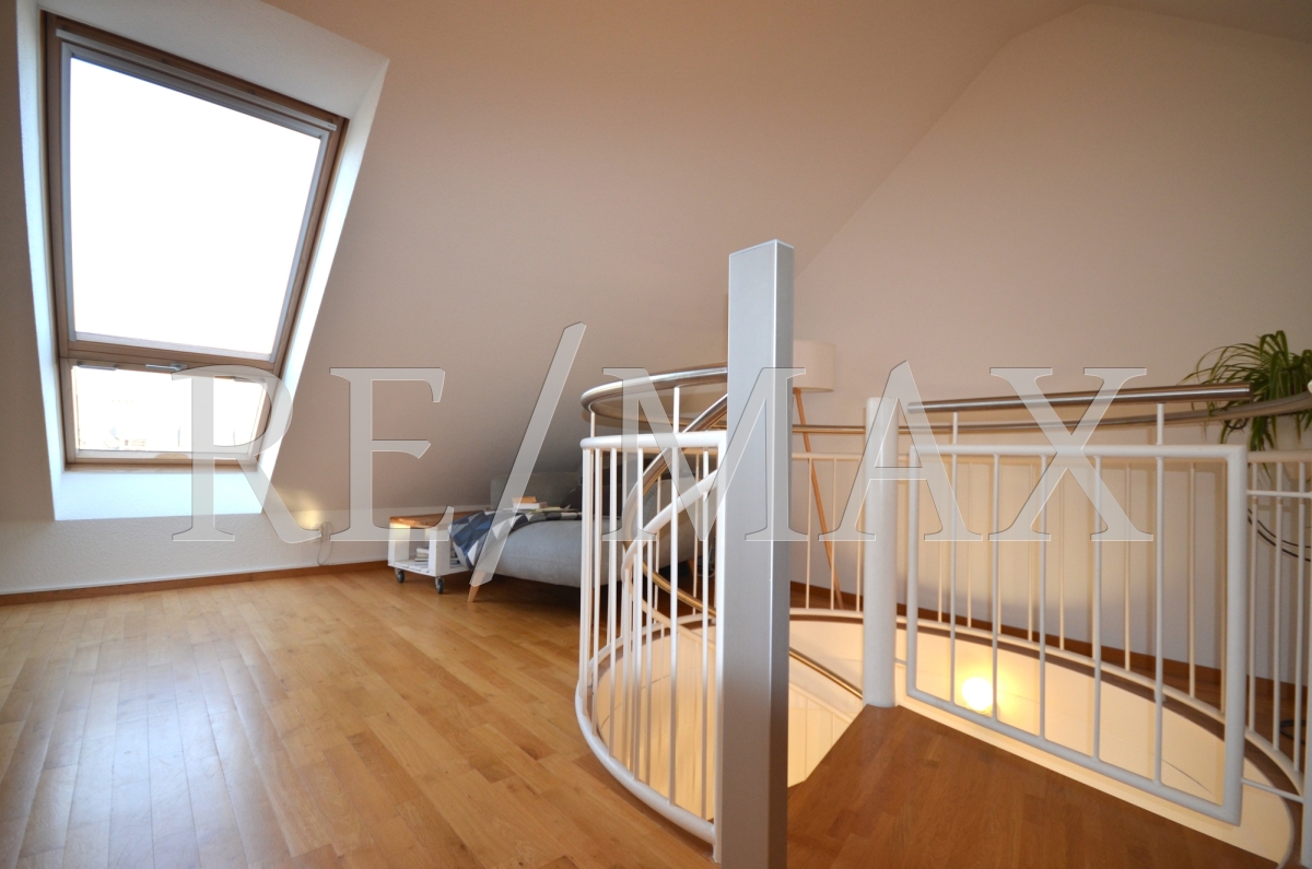 Die Treppe bringt Sie zum offen gestalteten 3. Zimmer hier genießen Sie die Aussicht aus dem Cabrio Fenster dieser Minibalkon hat einen echten WOW Effekt.