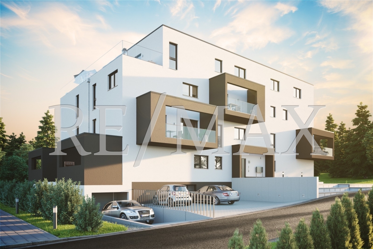 im „Bauhaus-Stil“ mit Flachdach und großzügigen Terrassen und Balkonen. Das
