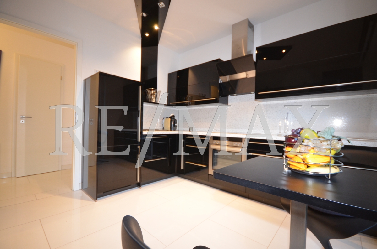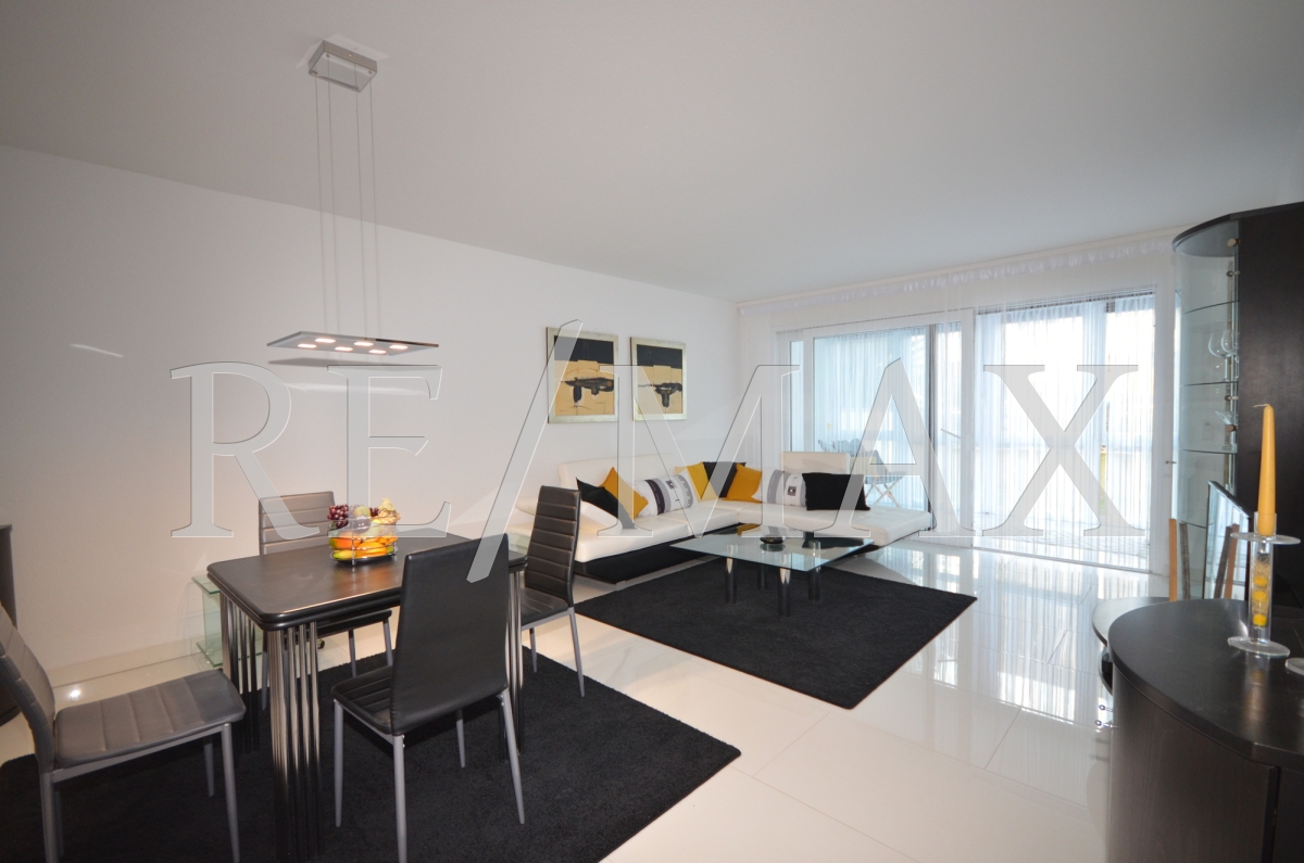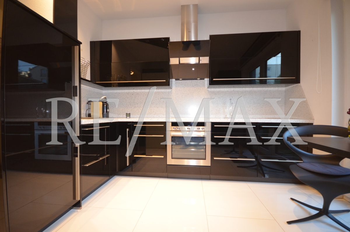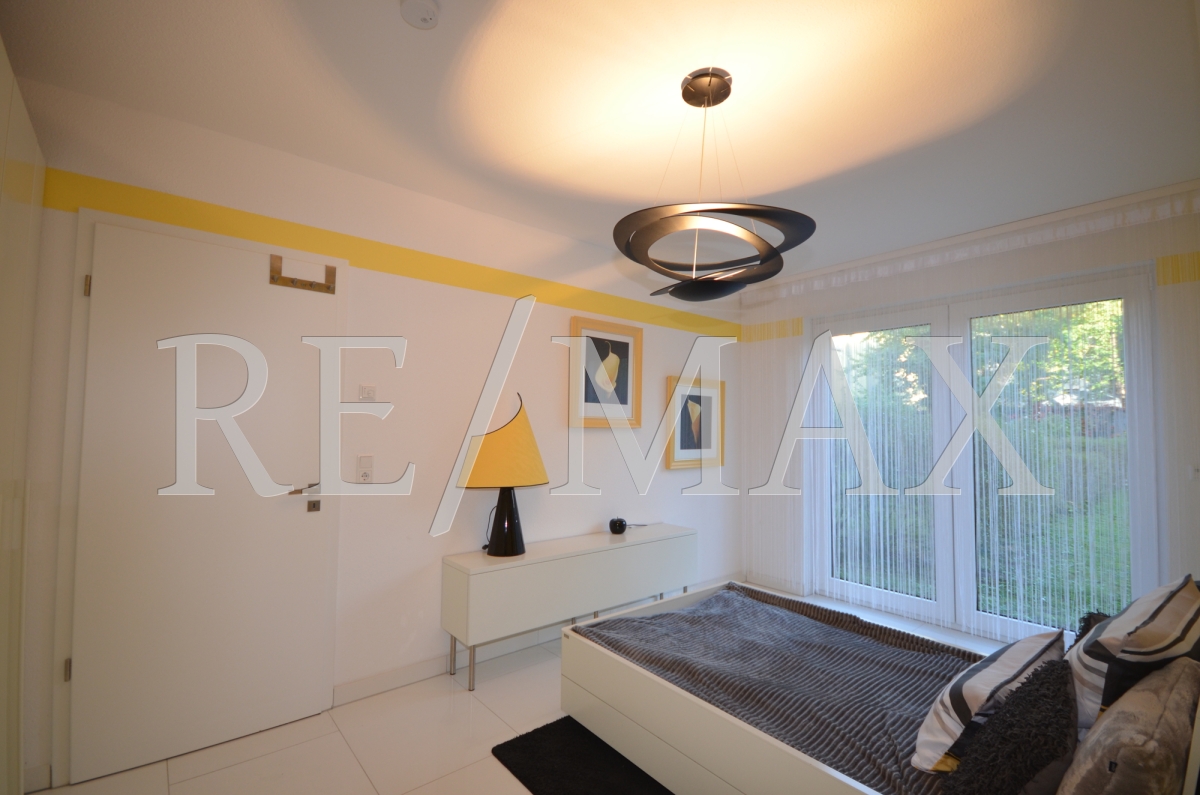 Ein stilvolles Tageslichtbad schafft den perfekten Rahmen für einen schwungvollen Start in den Tag. Die elegante Einbauküche mit Lackfronten und hochwertigen Markengeräten lässt keine Wünsche offen. Praktischerweise ist auch die Waschmaschine in die Küche integriert. Das geräumige Schlafzimmer bietet Ihnen einen ruhigen Rückzugsort.